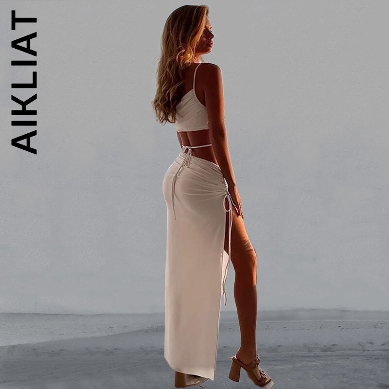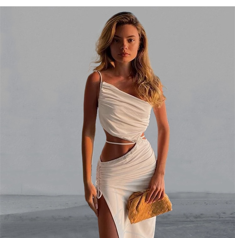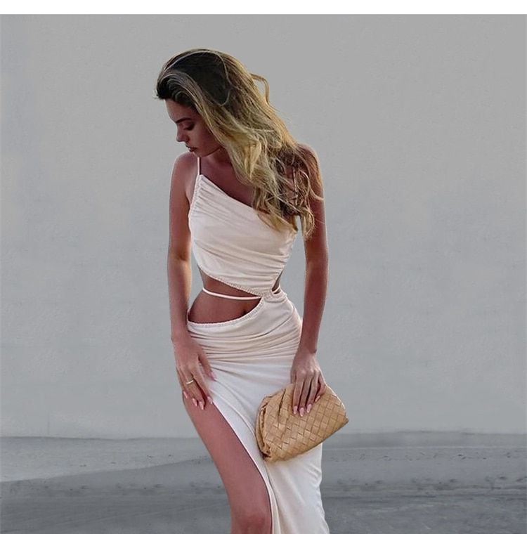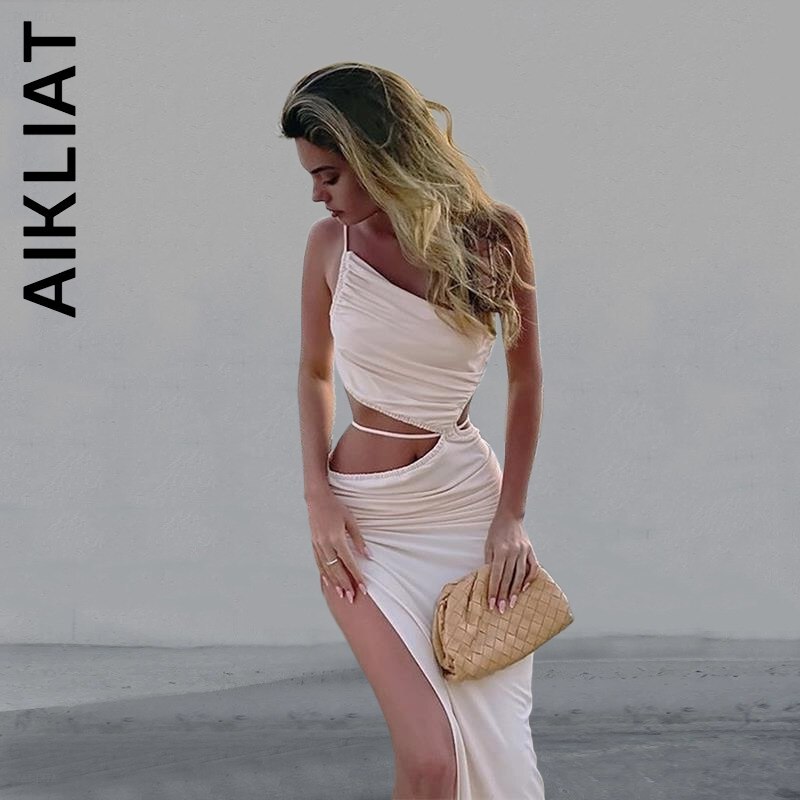 Aikliat Bodycon Women Hollow Out White Sleeveless Backless Sexy Dresses Simple Holiday Party Dresses Vestidos Female Clothing
