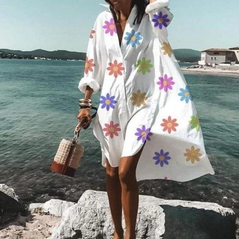 Summer Oversized loose casual aesthetic Summer Dress 2022 Sexy beach shirt Dress New Bohemian long sleeves elegant